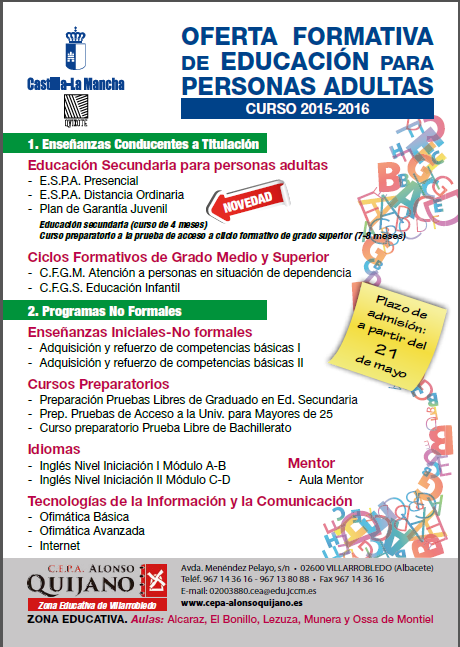 A partir de diciembre se podrá realizar la admisión para Educación Secundaria de Adultos. El inicio del 2º cuatrimestre será en febrero.