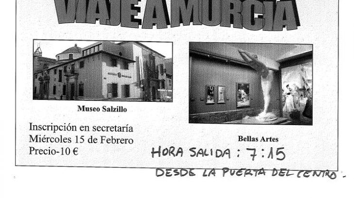 El día 15 de febrero haremos un viaje a Murcia, donde visitaremos el museo Salzillo, museo de Bellas Artes y el Casco Histórico.